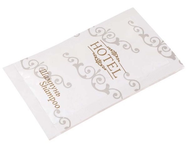 Шампунь Hotel (Отель) объем 10 мл. Подходит для всех типов волос. Упаковка - саше, тресхлойная пленка с металлизированным слоем. Количество в коробке - 500 штук.