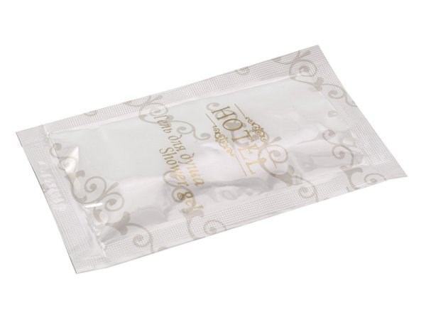 Гель для душа Hotel (Отель) . Состав: вода деионизированная, лауретсульфат натрия, диэтаноламид жирных кислот кокосового масла, кокамидопропил сульфобетаин, глицерат - 2 кокоат, натрий хлорид, этоксилированное масло, метил-хлоризотиазолинон, тетранитриевая соль, ЭДТА, кислота лимонная, экстракт глюкоманнана, экстракт репейника, череды, протеина пшеницы, парфюмерная композиция, краситель пищевой. Упаковка - саше, тресхлойная пленка с металлизированным слоем. Количество в коробке - 500 штук.